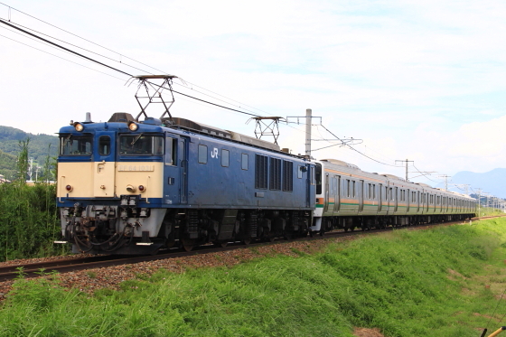 2014-08-29 211系2000番台(元田町車N21編成)配給 信越本線(長野-篠ノ井) #鉄道、列車 211系2000番台(元田町車N21編成)が、疎開先から北長野へ配給輸送されました。北長野駅到着後は、北長野駅2番線から長野総合車両センターへ入区しました。車両自体は、特に改造等手を加えられた様子は無く、長野総合車両センターで転用改造工事が行われるものと思われます。 なお、北長野到着時点ではEF64-1031が牽引を担当しました。 EF64-1031に牽引されて北長野へ(豊野-三才) 車両は特に変化は無いです(豊野-三才) 久々に長野総合車両センターに戻って来ました(豊野-三才)
