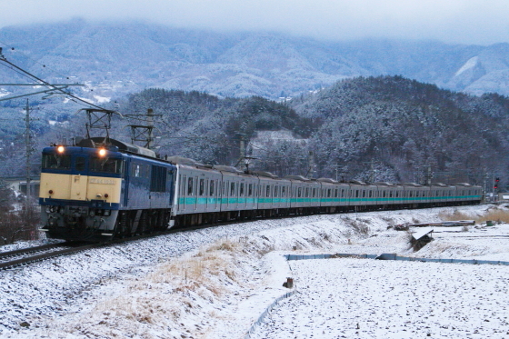 2016-03-10 E233系2000番台(松戸車)マト12編成配給 篠ノ井線・中央本線 #鉄道、列車 2月15日に「無線列車制御システム」(CBTC)に関係する工事を行う関係で、長野総合車両センタ-へ配給されたE233系松戸車(マト12編成)が、取り付け(準備)工事を終えて長野総合車両センタ-から松戸車両センタ-へ配給されました。 配給に際しては、EF64-1032が全区間で牽引を担当しました。 松戸車両センタ-へ配給されるE233系2000番台マト12編成(坂北-西条) 上画像の後打ち <関連ページ> ・E233系松戸車(マト12編成)3両入場