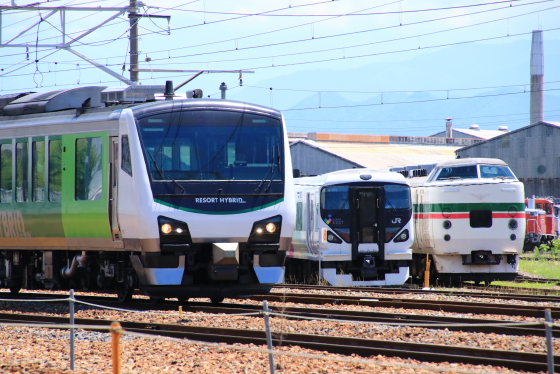 2018-07-10 HB-E300臨時回送運転 長野総合車両センター #鉄道、列車 小淵沢から長野までの団体列車に使用されるHB-E300の臨時回送列車が運転されました。本日は、他の撮影列車があった都合で長野総合車両センターの出区シーンのみ撮影しました。