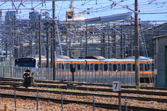 2018-07-10 E233系T36編成試験走行 長野総合車両センター #鉄道、列車 長野総合車両センターに入場中のE233系(豊田車)T36編成の試験走行が行われました。ただ、今回は走行系は特に何もしていないので編成組成を行い工場線を1往復走行させて終了しました。 画像の通り、停止位置からサハまでの位置が遠く、さらに工場線は上り勾配で手前に基地線がある関係で床下を見ることができず、今回の入場の理由を画像で確定させることはできませんでした。 E233系のライトが点灯 E257系M107編成・189系M52編成の前を通過。豊田車両センターみたいな光景 工場線を進みます この位置で停止 バックして工場へ パンタグラフを降ろして僅か1往復の試験走行は終了 試走も終わりましたので、近日中に豊田車両センターへ戻ると予想されます。