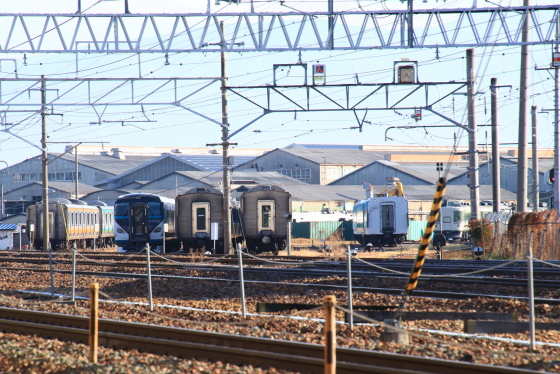 本日(12/7)9時頃の長野総合車両センター廃車置場周辺の様子です。前回訪問時より変わったのは651系が解体線へ押し込まれ解体作業が始まっていました。