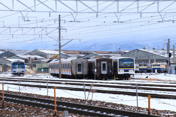 本日(1/31)9時頃の長野総合車両センター廃車置場周辺の様子です。前回訪問時と比べて特に動きは無いようです。解体線の215系は少なくとも車体の解体は終わったのか見える範囲に姿は見えませんでした。