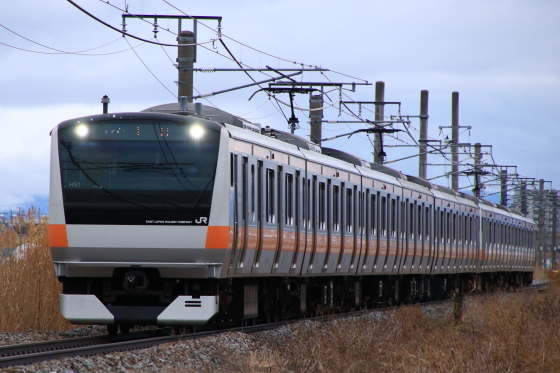 E233系H51編成は、先週木曜日に6両で構内試運転(居町踏切まで)を行いました。その翌日に4両で構内試運転(居町踏切まで)を行い、週明けの昨日(2/19)に一連の工事終了の一区切りとなる10両で工場線内のみ1往復構内試運転を行い、午後の昼下がりに長野総合車両センター(工場/南基地)を出場して入換で北基地に移動し本日の回送となりました。