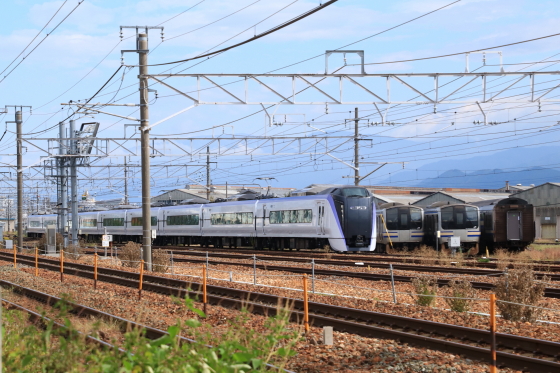長野総合車両センター(工場)に入場中のE353系S119編成の検査が最終段階となり試運転線にて構内試運転が行なわれました。構内試運転は、居町踏切折り返し基準で3往復行なわれました。間もなく出場するかと思われます。